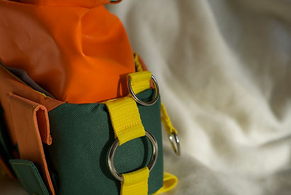 The metal O rings, and D rings found throughout the bags can be used for attaching them to the added straps or through the carabiners to attach to gear or vehicles.